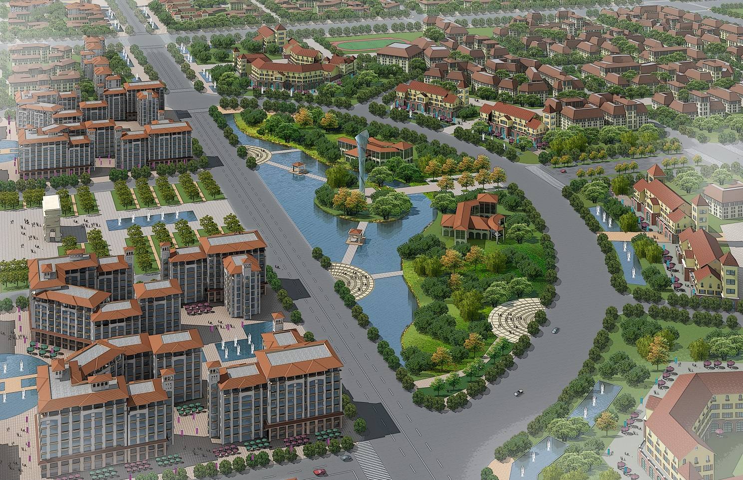 1)濱水核心區 —— 文化休閑中心、拜城的RBD(Recreational Business District)