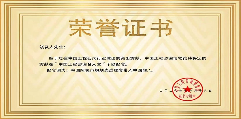 2020年11月18日,鑒于饒及人先生在中國工程咨詢行業做出的突出貢獻,中國工程咨詢博物館特將饒先生在“中國工程咨詢名人堂”予以紀念。